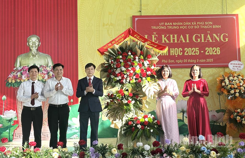 * Đồng chí Nguyễn Anh Chức, Ủy viên Ban Thường vụ Tỉnh ủy, Phó Chủ tịch UBND tỉnh đã đến dự và tặng hoa chúc mừng Trường THCS Thạch Bình, xã Phú Sơn nhân dịp khai giảng năm học mới. Cùng đi có lãnh đạo Sở Văn hóa và Thể thao, Văn phòng UBND tỉnh, Sở Giáo dục và Đào tạo, lãnh đạo xã Phú Sơn.