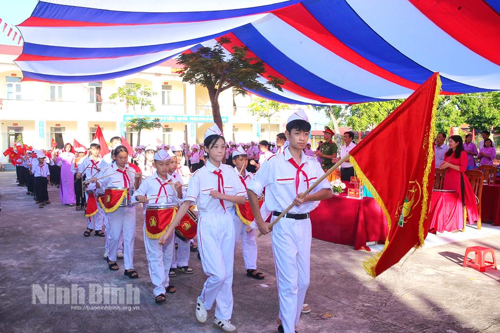 Lễ khai giảng năm học mới 2025-2026 của thầy và trò Trường THCS Hồi Ninh (xã Chất Bình). Ảnh: Anh Tuấn