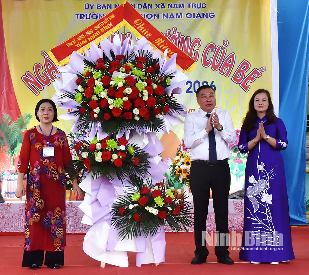 Tại Lễ khai giảng, đồng chí Đinh Văn Tiên, Ủy viên Ban Thường vụ Tỉnh ủy, Giám đốc Sở Nông nghiệp và Môi trường đã chúc mừng và tặng cô và trò Trường Mầm non Nam Giang lẵng hoa tươi thắm.
