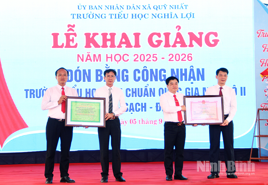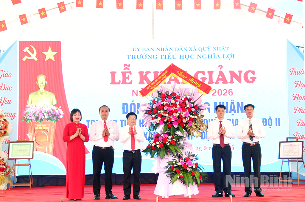 * Sáng 5/9, Đảng ủy, HĐND, UBND xã Quỹ Nhất phối hợp với Trường Tiểu học Nghĩa Lợi tổ chức Lễ đón nhận Bằng công nhận Trường đạt Chuẩn quốc gia mức độ II, Bằng công nhận Trường đạt chuẩn Xanh – Sạch – Đẹp – An toàn và khai giảng năm học 2025-2026. Đồng chí Nguyễn Đức Toàn, Ủy viên Ban Thường vụ Tỉnh ủy, Trưởng Ban Tuyên giáo và Dân vận Tỉnh ủy dự, chúc mừng nhà trường.