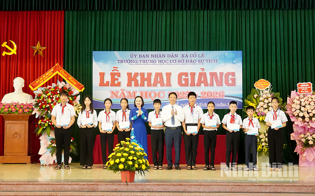 Nhân dịp này, Quỹ Khuyến học Đào Sư Tích, xã Cổ Lễ đã trao 10 suất học bổng cho các em học sinh có hoàn cảnh khó khăn vươn lên học giỏi và học sinh có kết quả xuất sắc trong Kỳ thi tuyển sinh vào lớp 6 Trường THCS Đào Sư Tích năm học 2025-2026; Ngân hàng Nông nghiệp và Phát triển nông thôn Agribank chi nhánh Trực Ninh trao 10 suất học bổng cho các em học sinh có hoàn cảnh khó khăn vươn lên học giỏi.