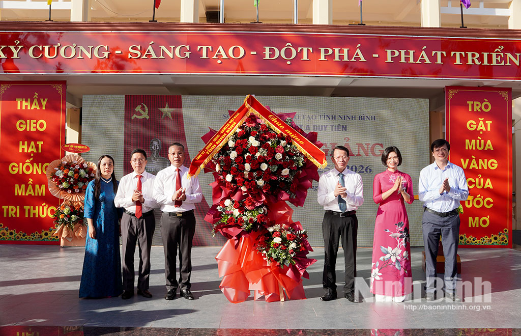 * Sáng 5/9, Trường THPT A Duy Tiên đã tổ chức lễ khai giảng năm học 2025 2026. Đồng chí Nguyễn Hải Dũng, Tỉnh ủy viên, Phó Trưởng Đoàn đại biểu Quốc hội tỉnh đã tới dự và tặng hoa chúc mừng nhà trường.