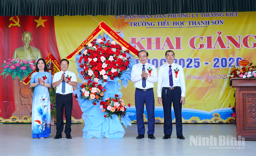 Thay mặt các đồng chí lãnh đạo tỉnh, đồng chí Phó Chủ tịch Thường trực HĐND tỉnh Đặng Thanh Sơn đã tặng hoa chúc mừng nhà trường nhân ngày khai giảng năm học mới; đồng thời cùng tham dự Lễ kỷ niệm 80 năm truyền thống ngành Giáo dục và khai giảng năm học 2025-2026 do Bộ Giáo dục và Đào tạo tổ chức theo hình thức trực tuyến.